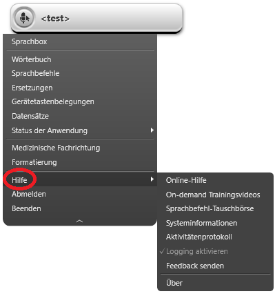 | 2. Unter dem Menüpunkt „Hilfe“ finden Sie den Punkt Logdaten (auch hier wieder mit gedrückter Shift-Taste) | |