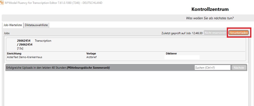 In der Job-Warteliste werden die Diktate durch Herunterladen in Bearbeitung genommen. Je nach Wunscheinstellung sind hier verschieden viele Diktate zu sehen. |