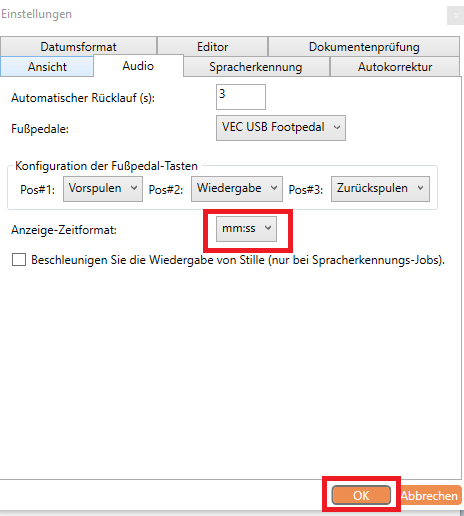 Sie können sich das Zeitformat über Werkzeuge Einstellungen Audio einstellen:
