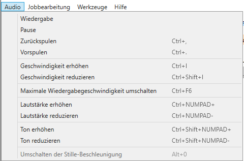 Über den Menüpunkt Audio finden Sie die Tastenkombinationen für die Steuerung: |
