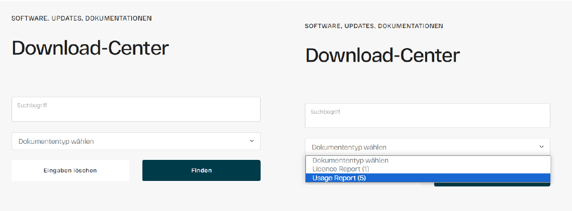 2. Suchen Sie unter Dokumententyp wählen nach allen Dokumenten eines bestimmten Typen (z.B. Usage Report).