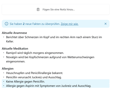 Wenn Sie die Aufnahme erneut beenden, wird Ihnen angezeigt, falls Fakten ergänzt wurden. Diese werden Ihnen in der Kontext-Übersicht blau markiert.