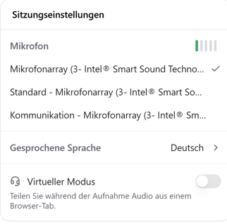 Bevor Sie die Aufzeichnung des Gesprächs starten, öffnen Sie die Sitzungseinstellungen.