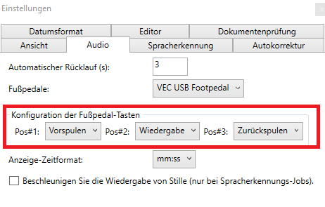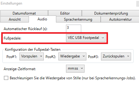 Über Werkzeuge Einstellungen Audio kann das Fußpedal konfiguriert werden.