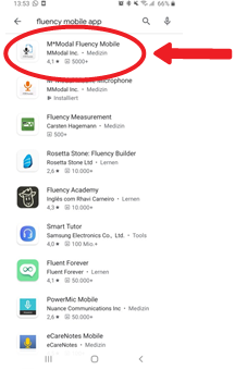 Geben Sie in der Suchleiste Fluency Mobile ein. |