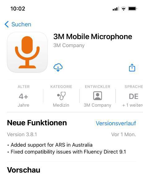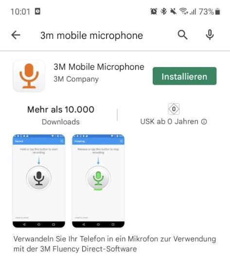 Suchen Sie im Google Play Store bzw. im Apple AppStore nach 3M Mobile Microphone und installieren Sie die App.